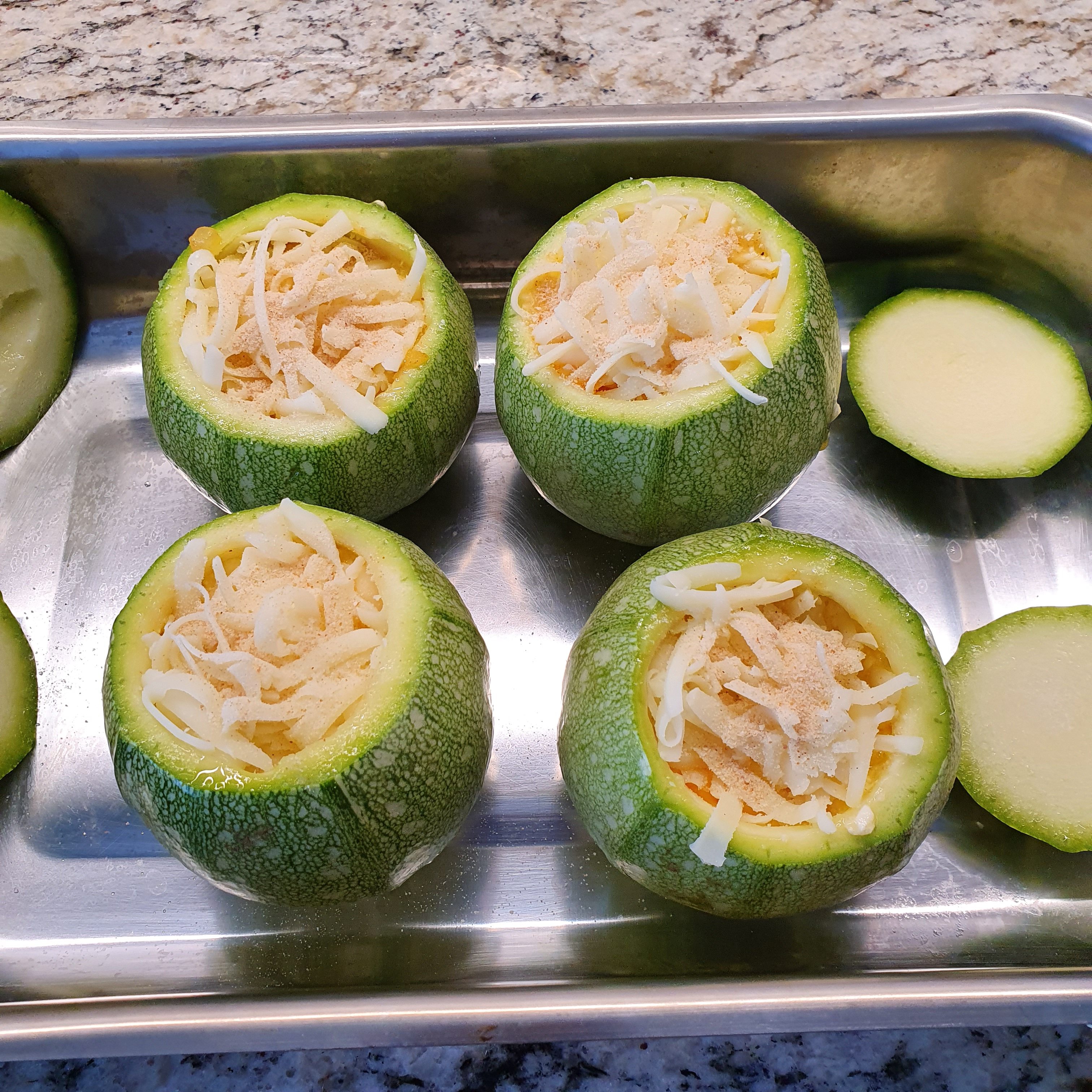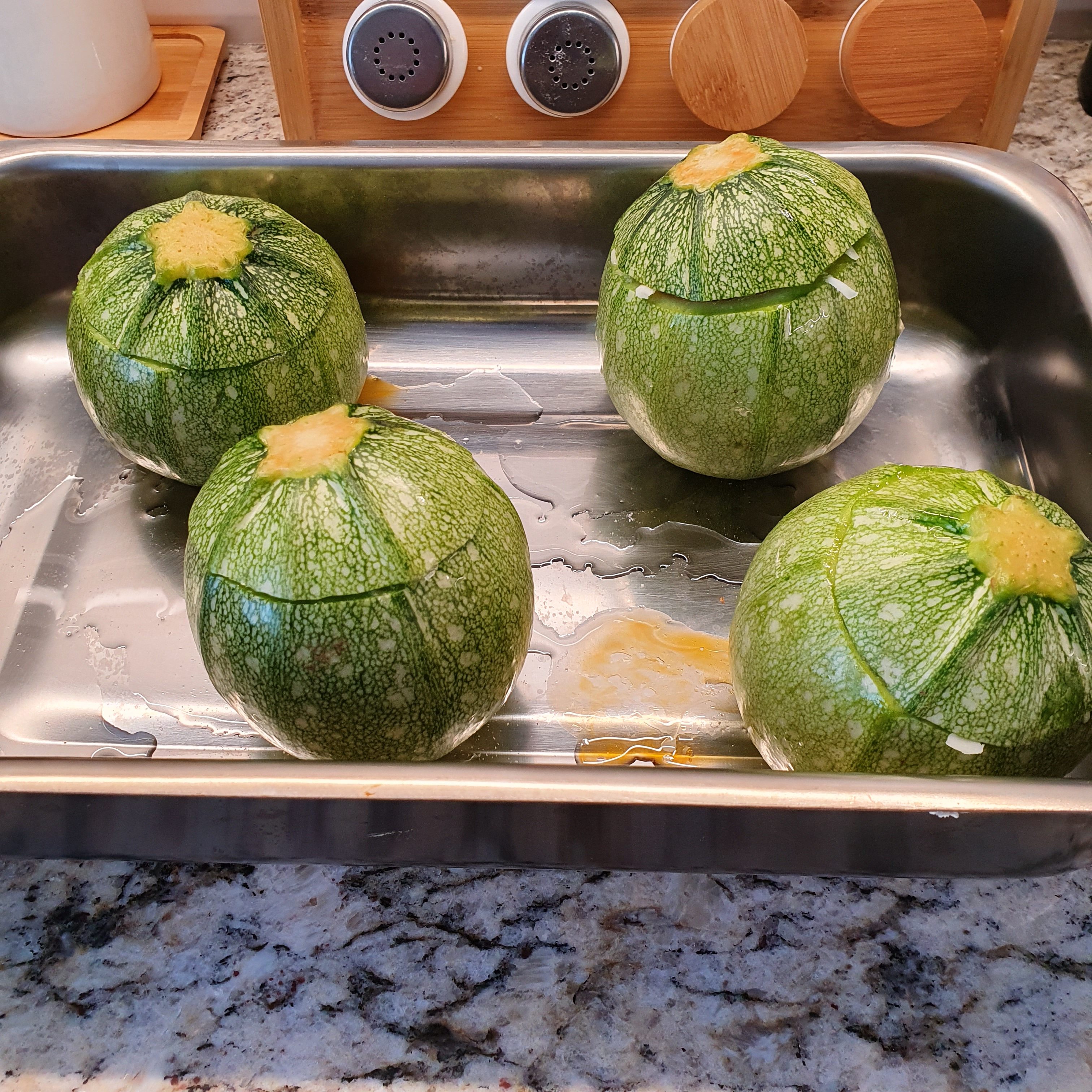 Cover the zucchini with their lids. Lightly sprinkle with oil and then bake in the oven at 170 degrees until done.