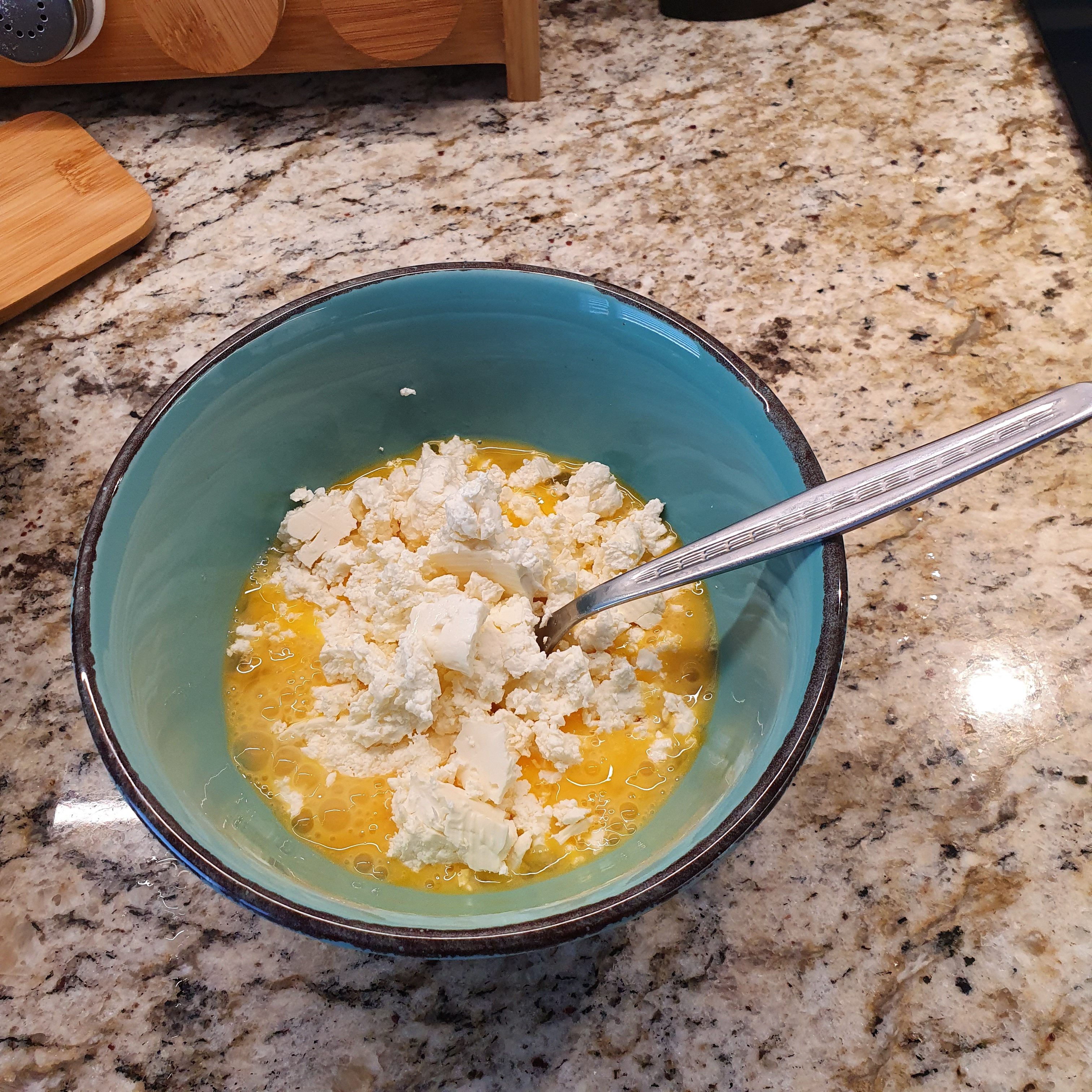Beat the eggs and add the shredded cheese. Fill the next 1/3 space with this mixture.
