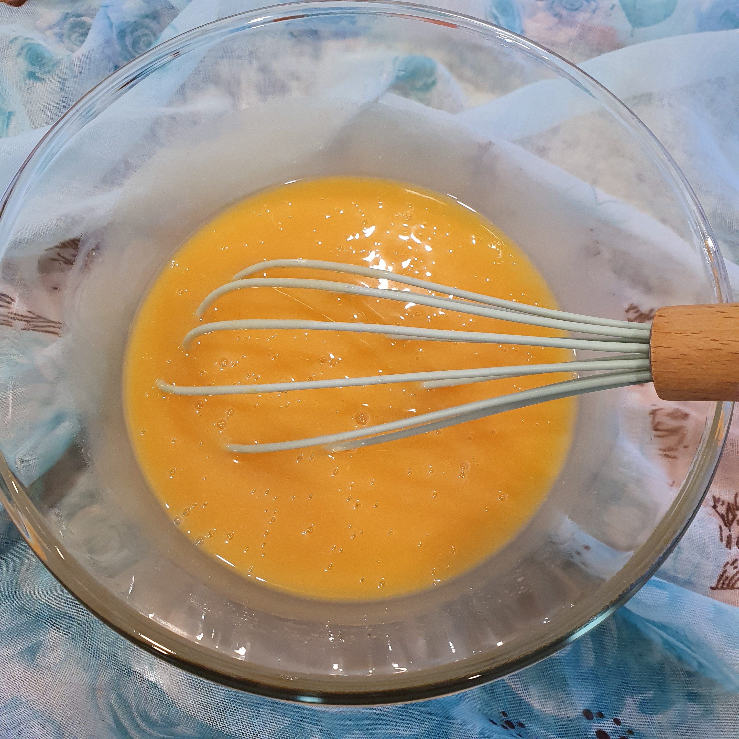 Mix the two types of flour and starch and carefully mix everything.