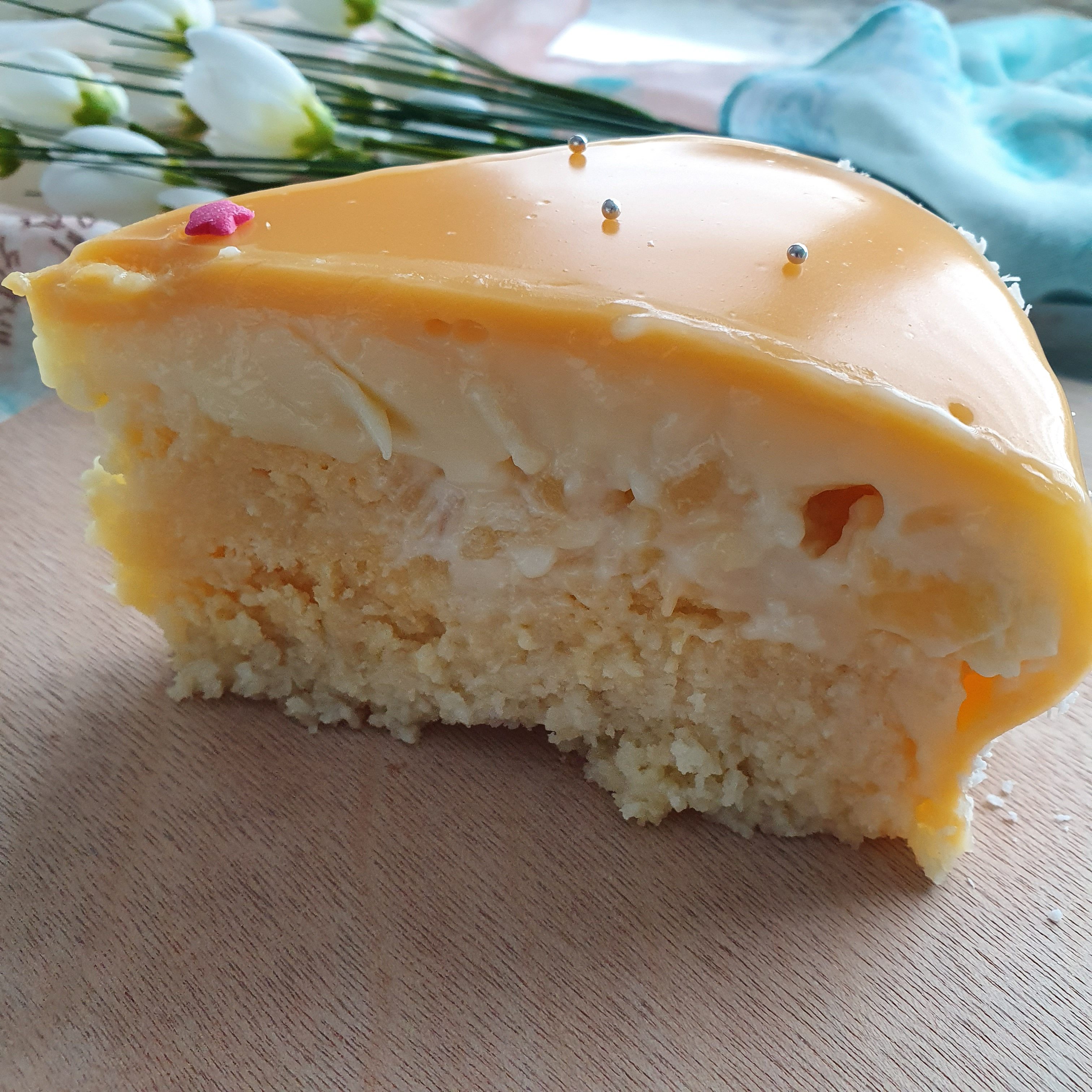 The cake is quite complicated to implement. There are many stages and it takes time to cool the individual layers. Long live the cans in times of isolation! It turned out that I had hidden stocks of canned pineapple and mango. 🙂 Definitely the fact that I’m constantly at home helped, and on the other hand making such a cake kills a lot of time. It has recently turned out to be more. Kill boredom by trying to do it these days. The taste is definitely worth it. 😉