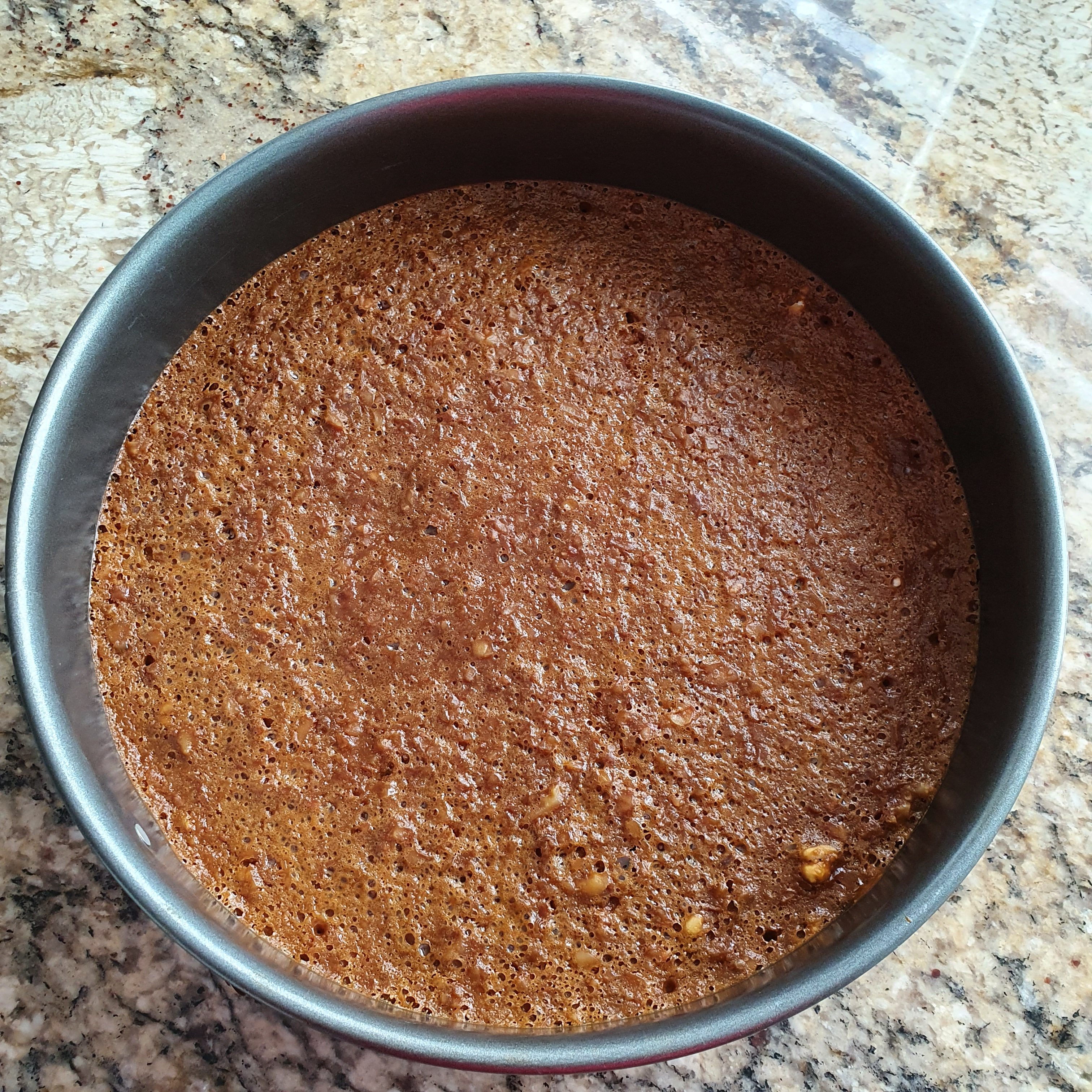 Once the base has cooled, pour the cream over it and return to the oven to bake at 160 degrees until done.