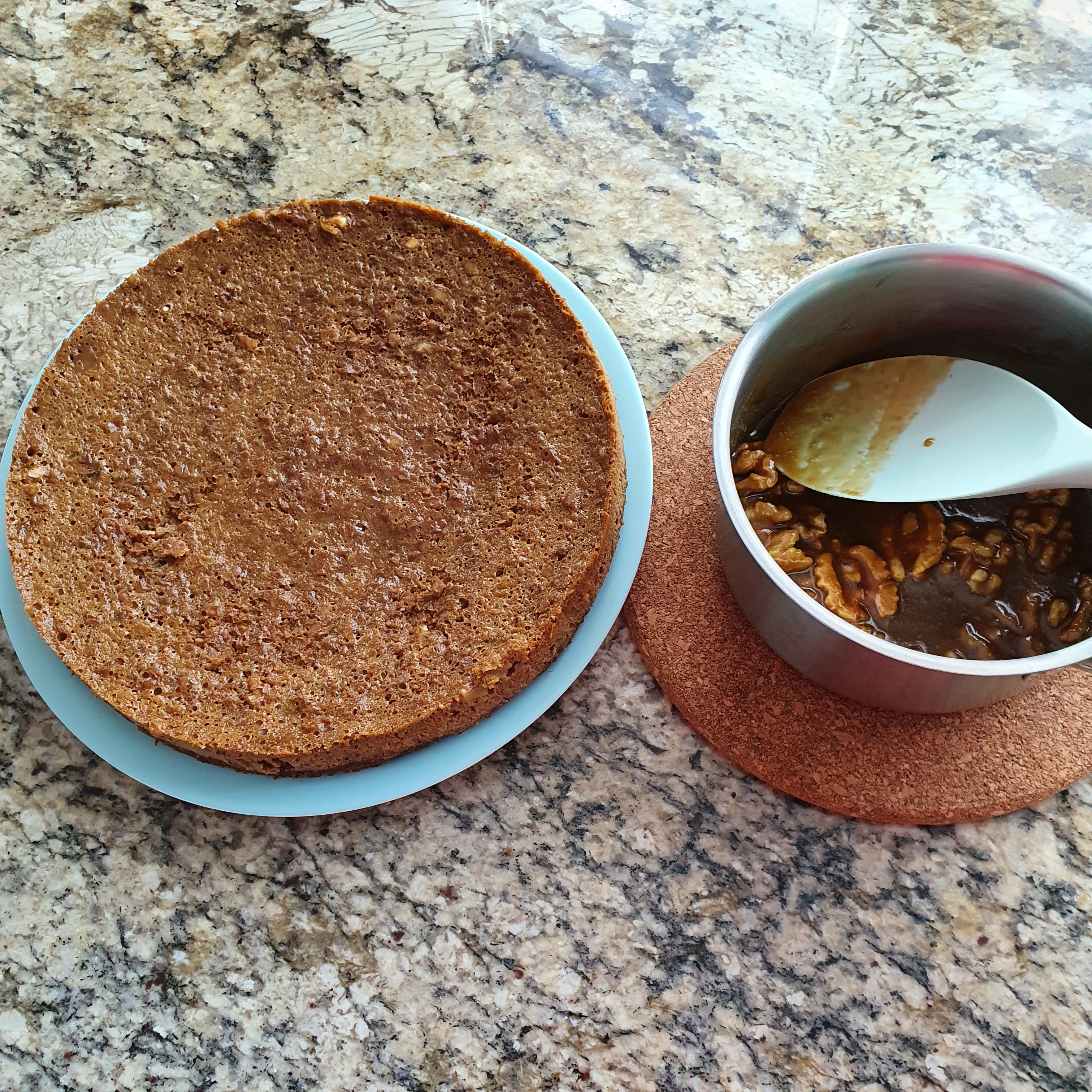 It’s time to prepare the glaze. Put in a small saucepan all the ingredients without the nuts and leave on the stove to thicken and melt the sugar. Finally, remove from the heat and add the nuts.