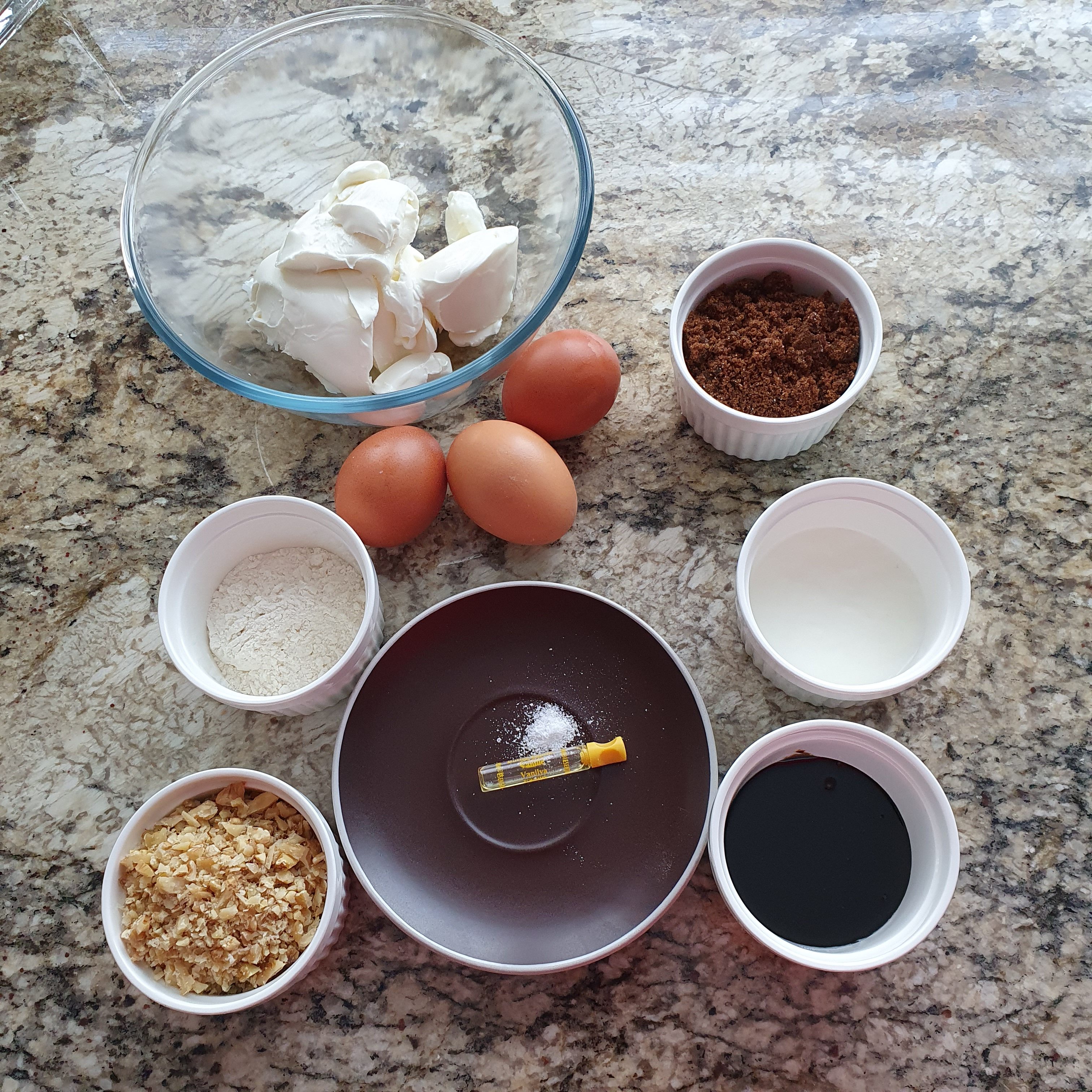Beat the cream cheese with the sugar and molasses. Then add the eggs one by one, beating until smooth. Add the remaining ingredients for the filling and beat until smooth.
