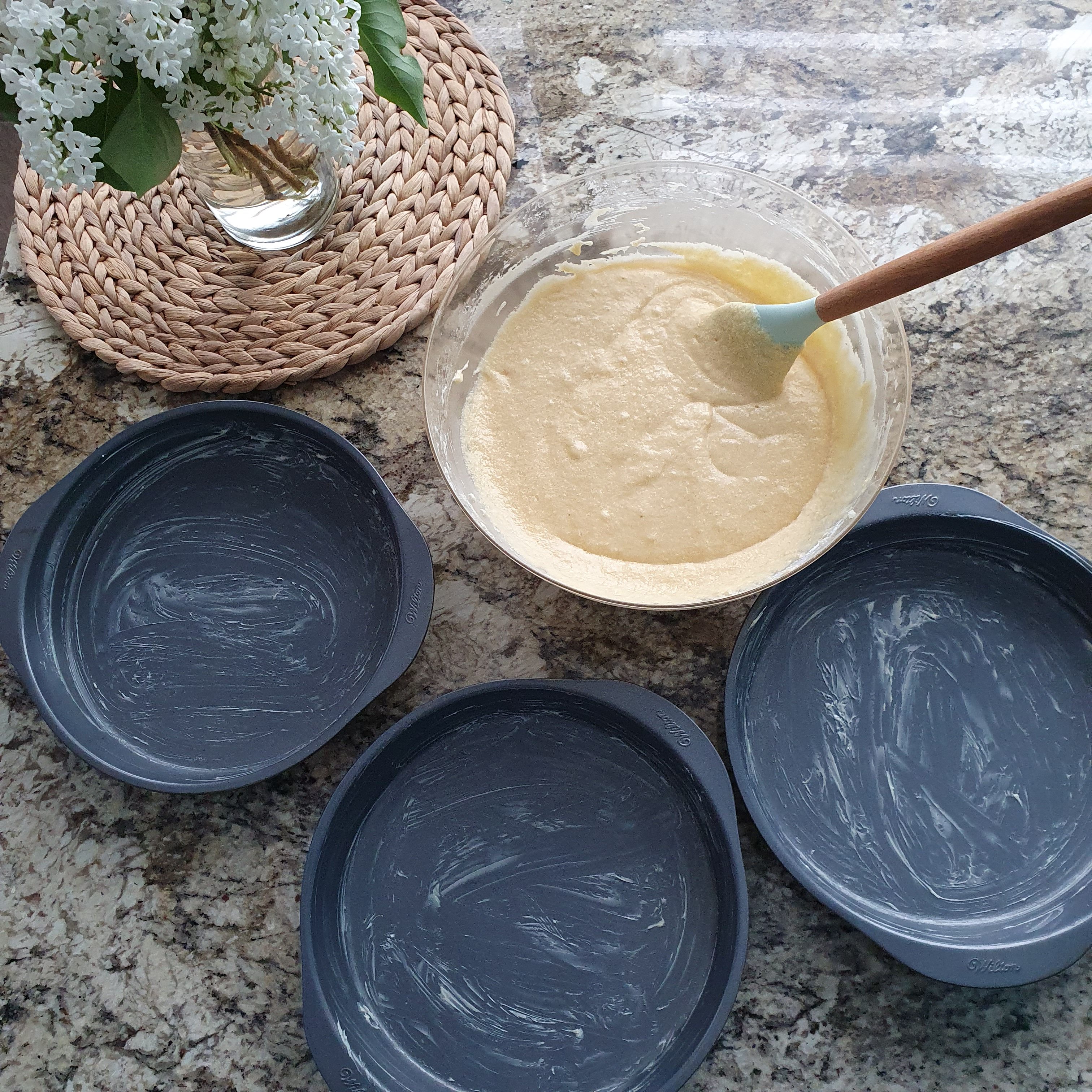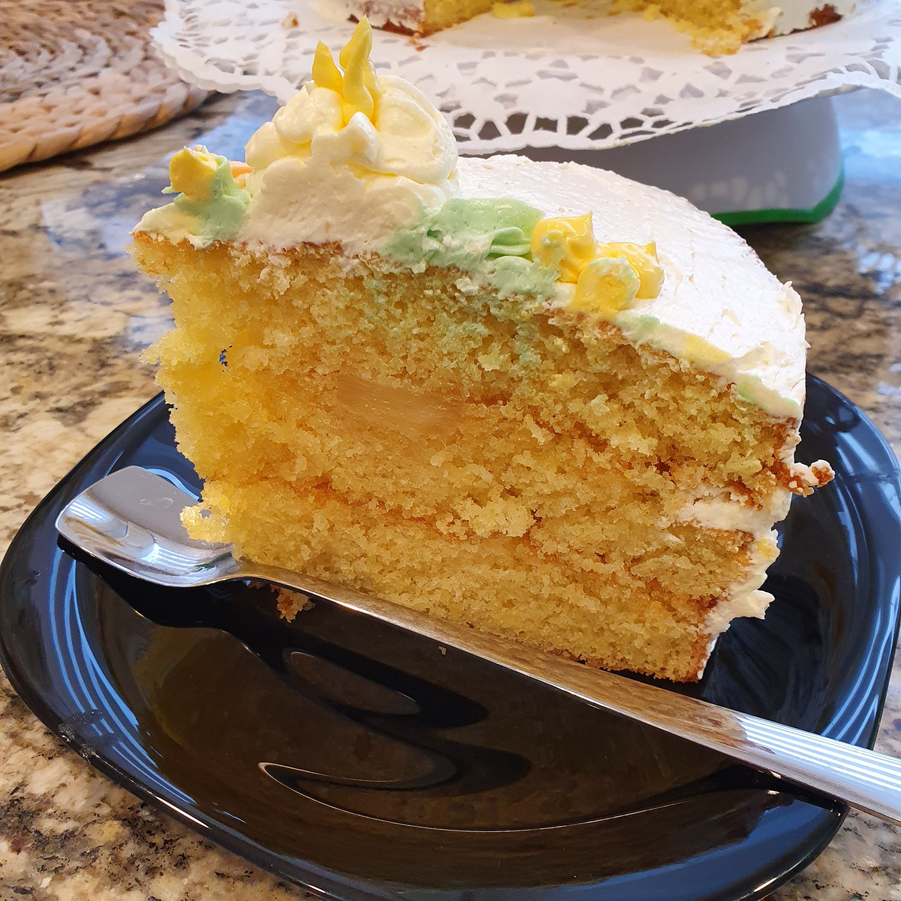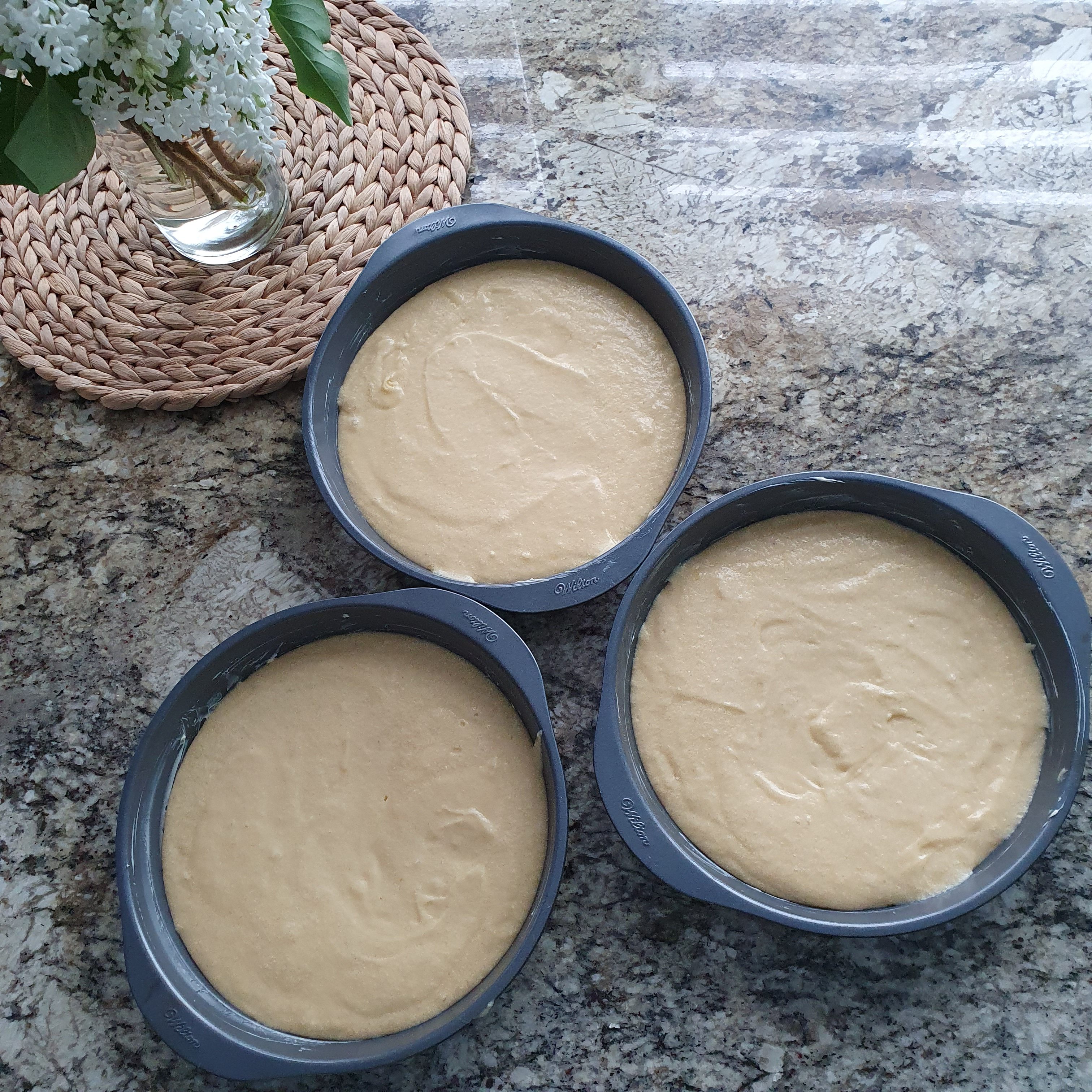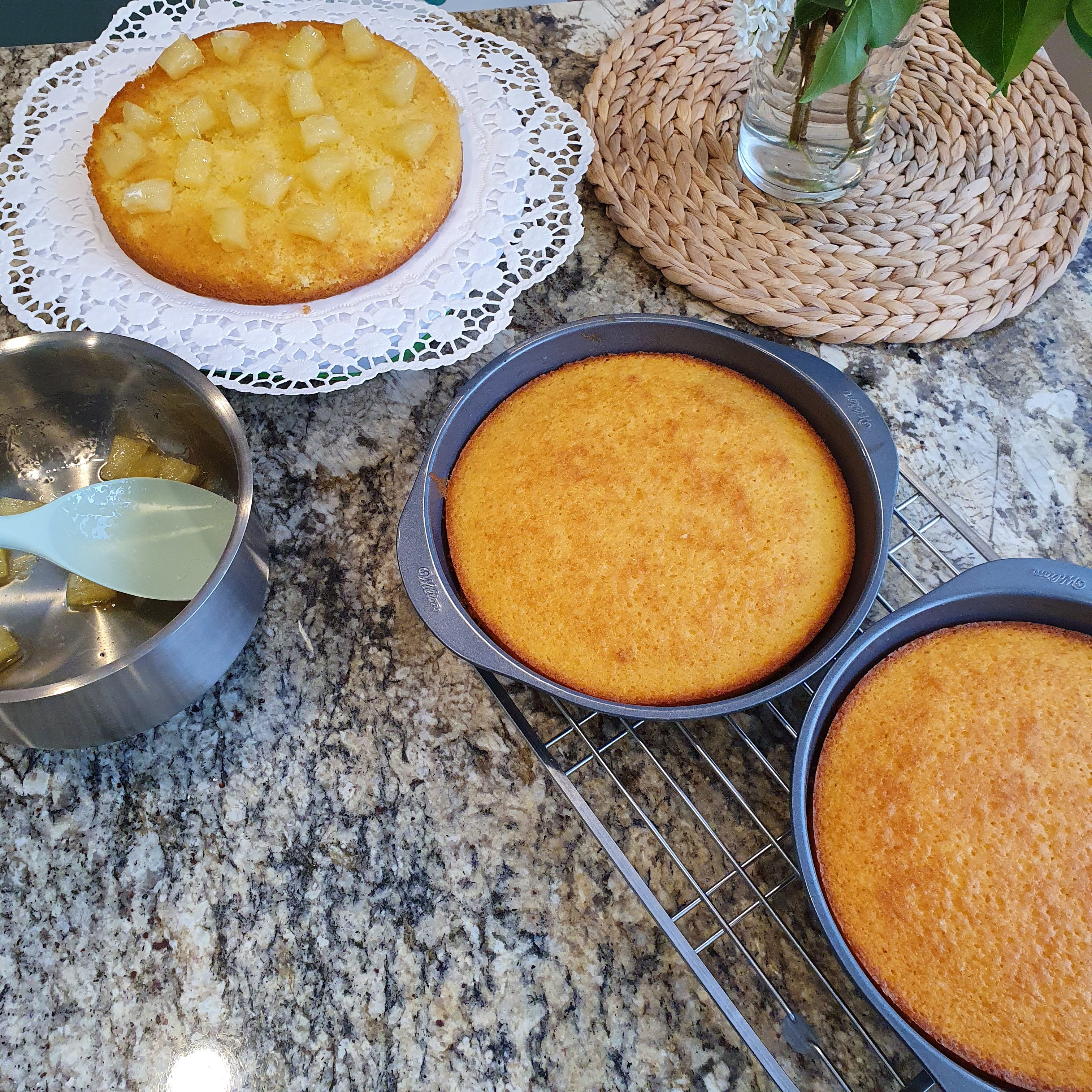 It’s time to assemble the cake. We alternate cake bases and pineapple.