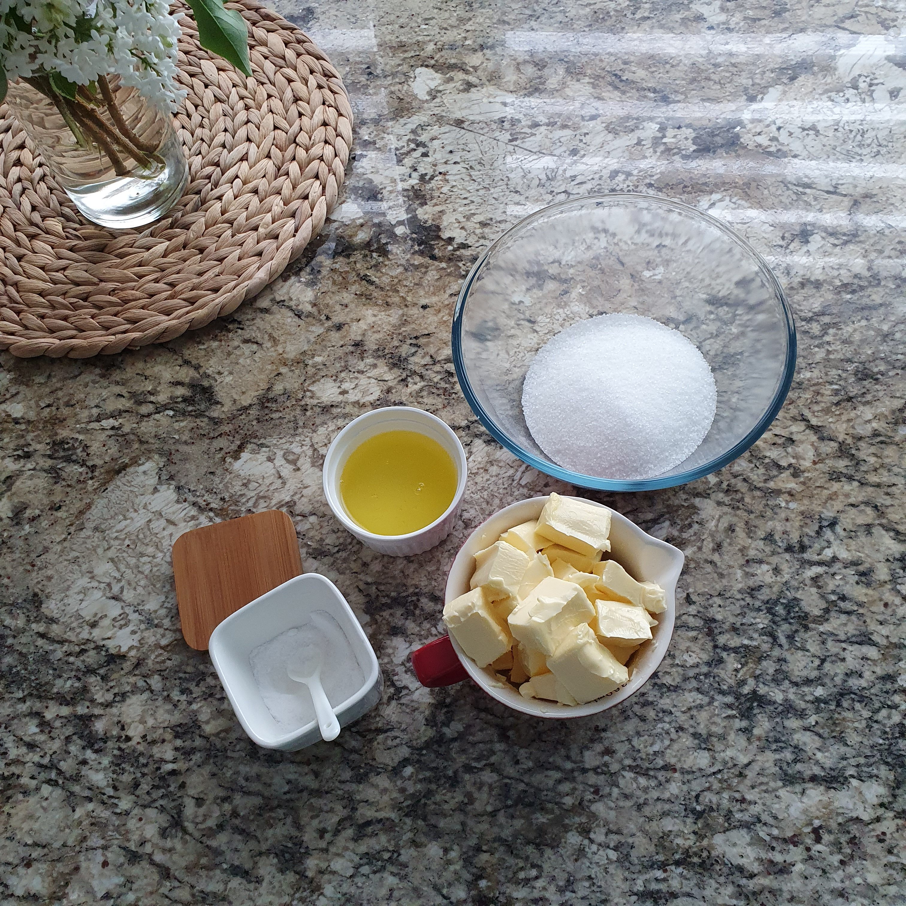 Meringue is used for the glaze in the original recipe. I decided to enrich it with butter and make Swiss butter cream. While the cake bases and pineapple sauce cool, I make cream.