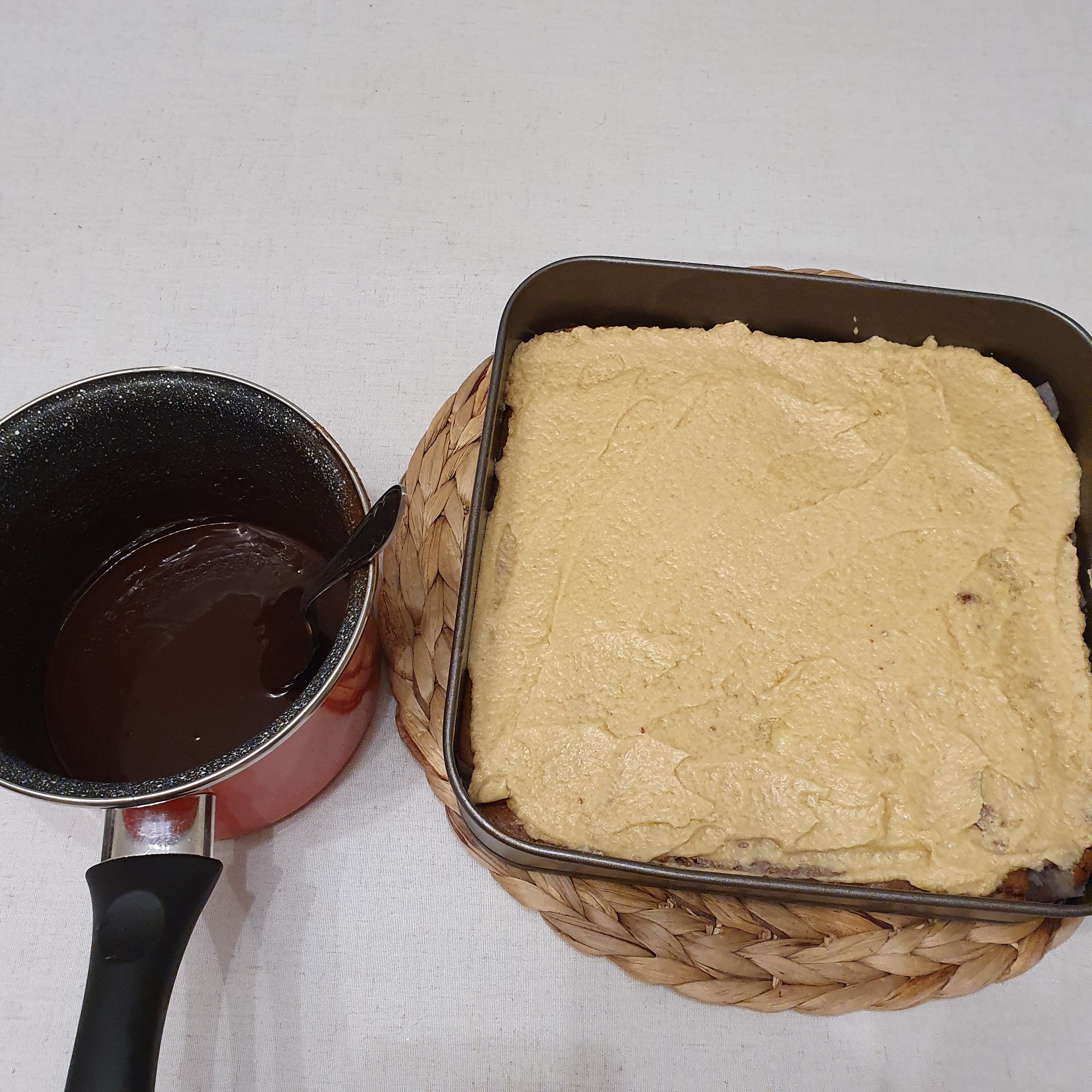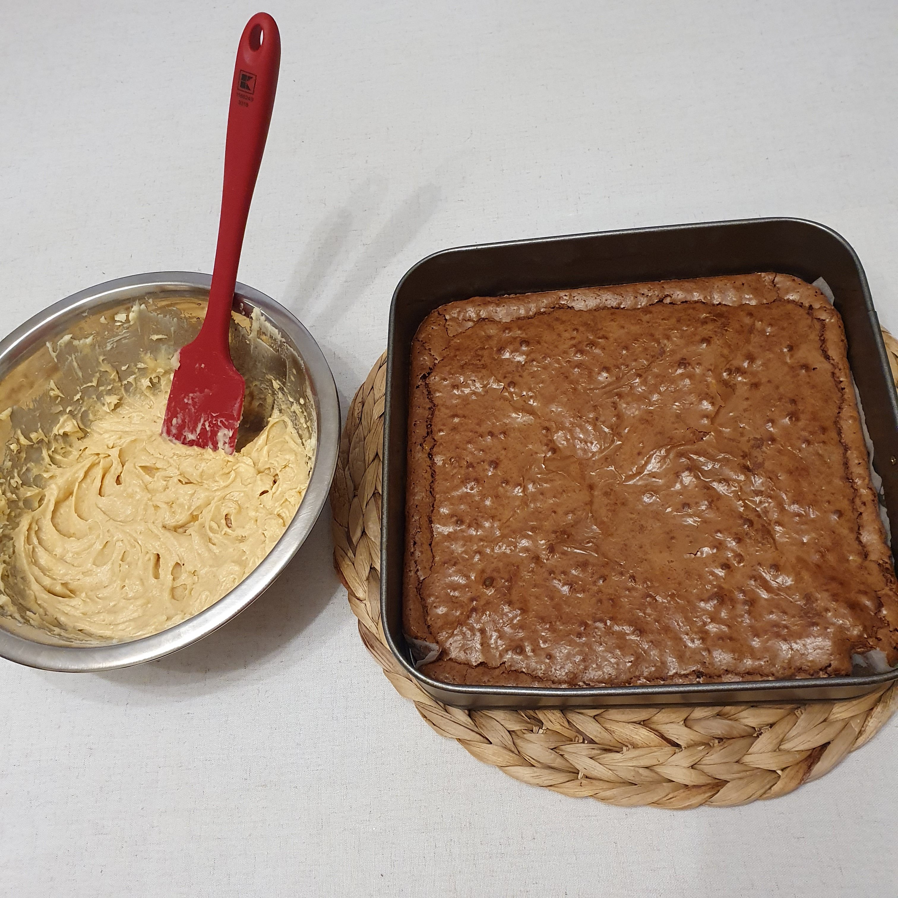 Spread the cream on the completely cooled Brownies. Leave in the refrigerator to cool while you prepare the chocolate sauce for topping.