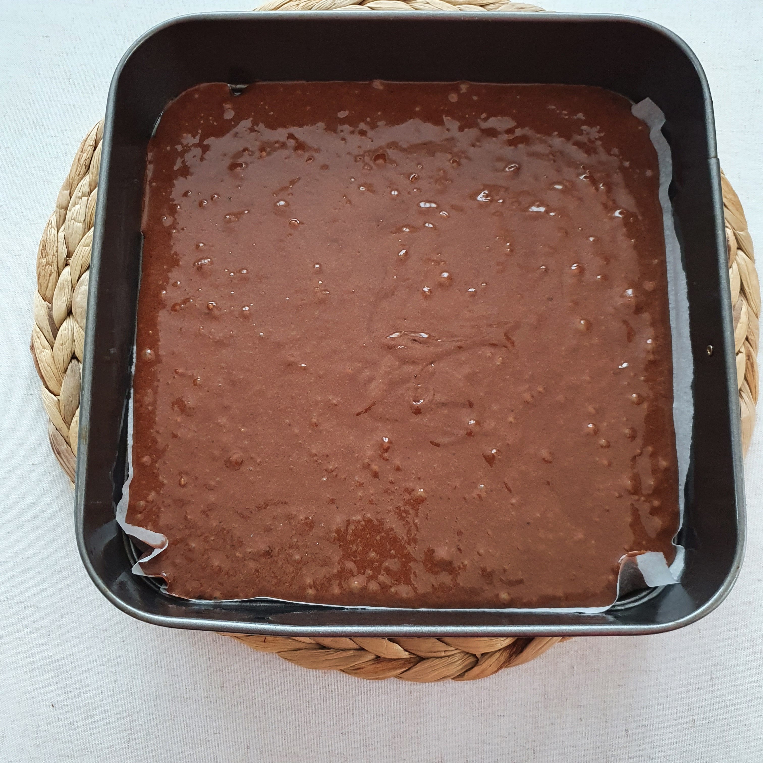 Grease the walls and bottom of a rectangular baking dish with vegetable oil or butter. Place baking paper on the bottom and pour the mixture.