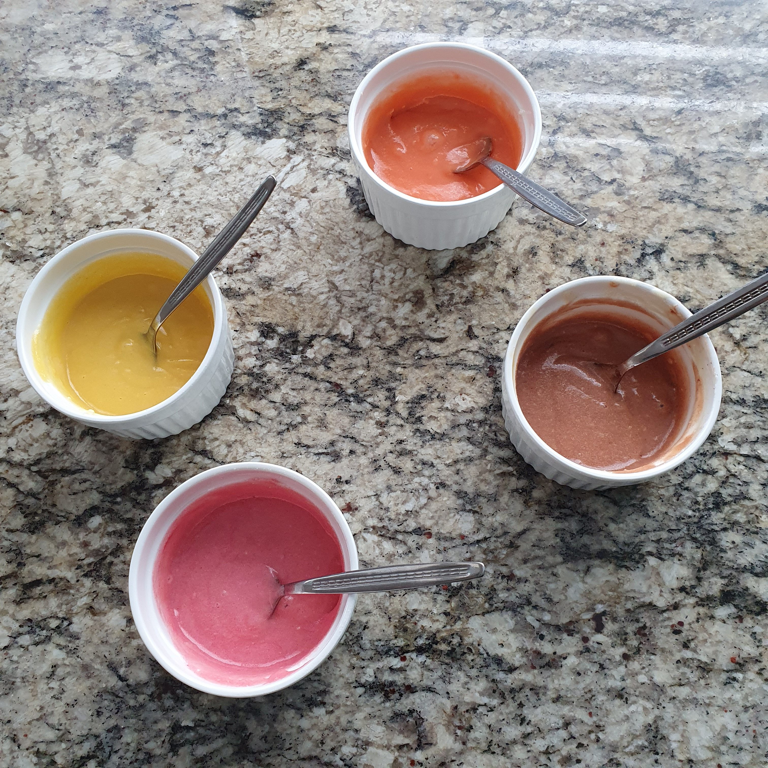 Remove from the refrigerator and fill the contours with the remaining color mixtures. Leave for another 20 minutes in the refrigerator.