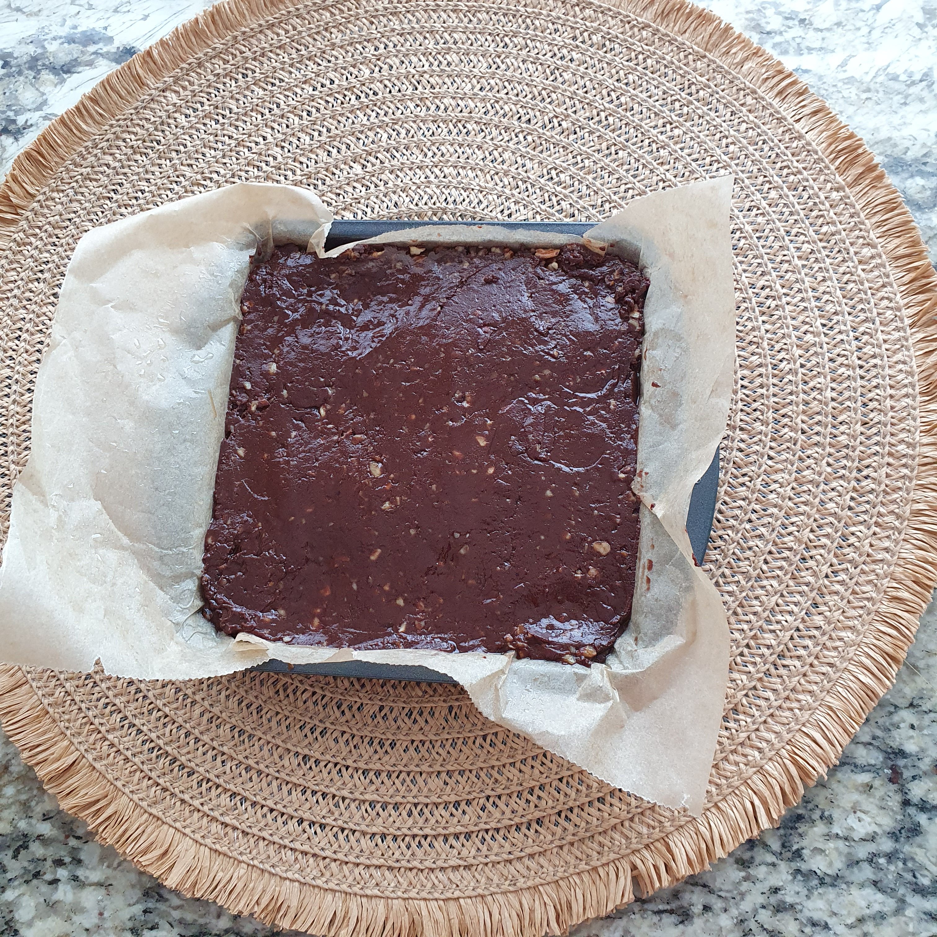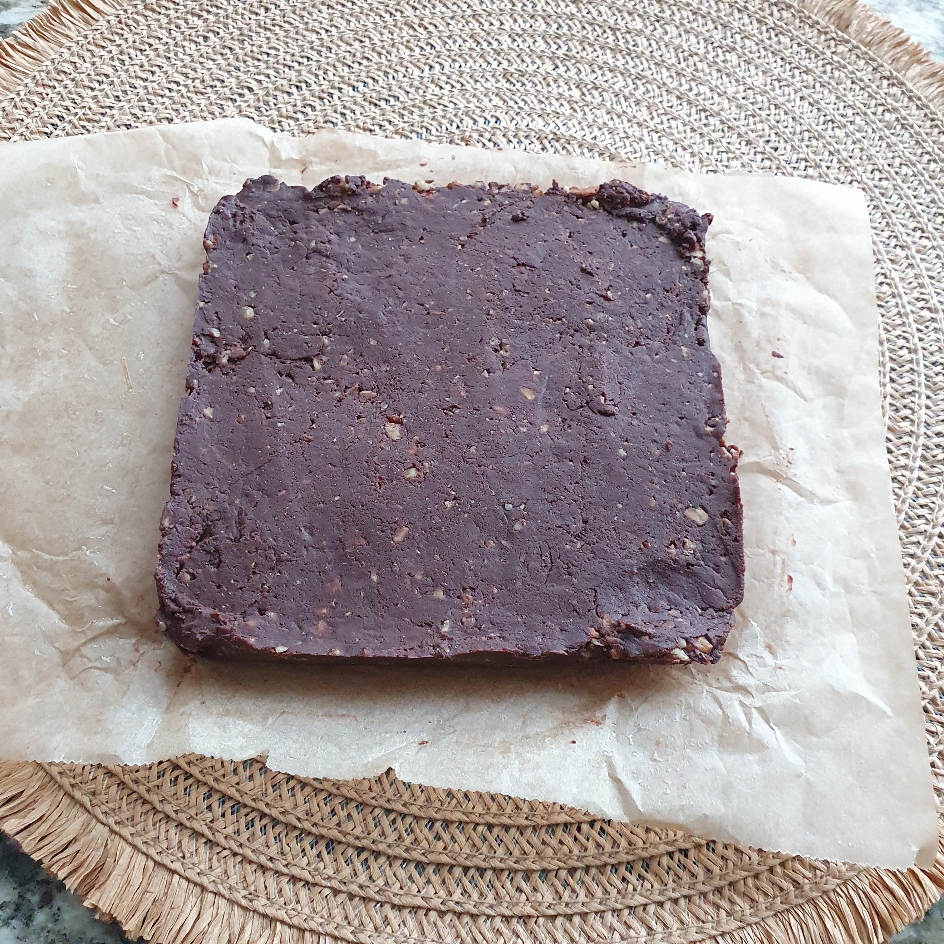 Melt the caramel candy together with the milk in the microwave for 2 minutes or in a water bath until the mixture liquefies. Line a rectangular tray measuring 20×20 cm with baking paper or in a suitable one, as the paper should be fed over the edge of the tray, for easier removal later. Grease the paper with cooking spray or vegetable oil. Melt both types of chocolate with condensed milk and salt. Mix the chocolate mixture with the crushed pecans and vanilla.