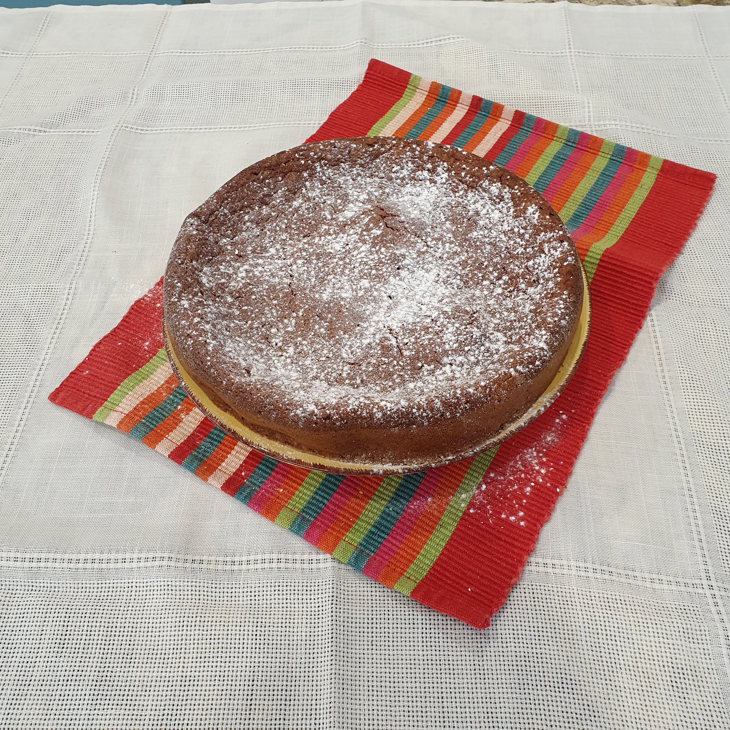 While the cake is warm, sprinkle it with powdered sugar. As much as you like the taste ๐Ÿ˜‰