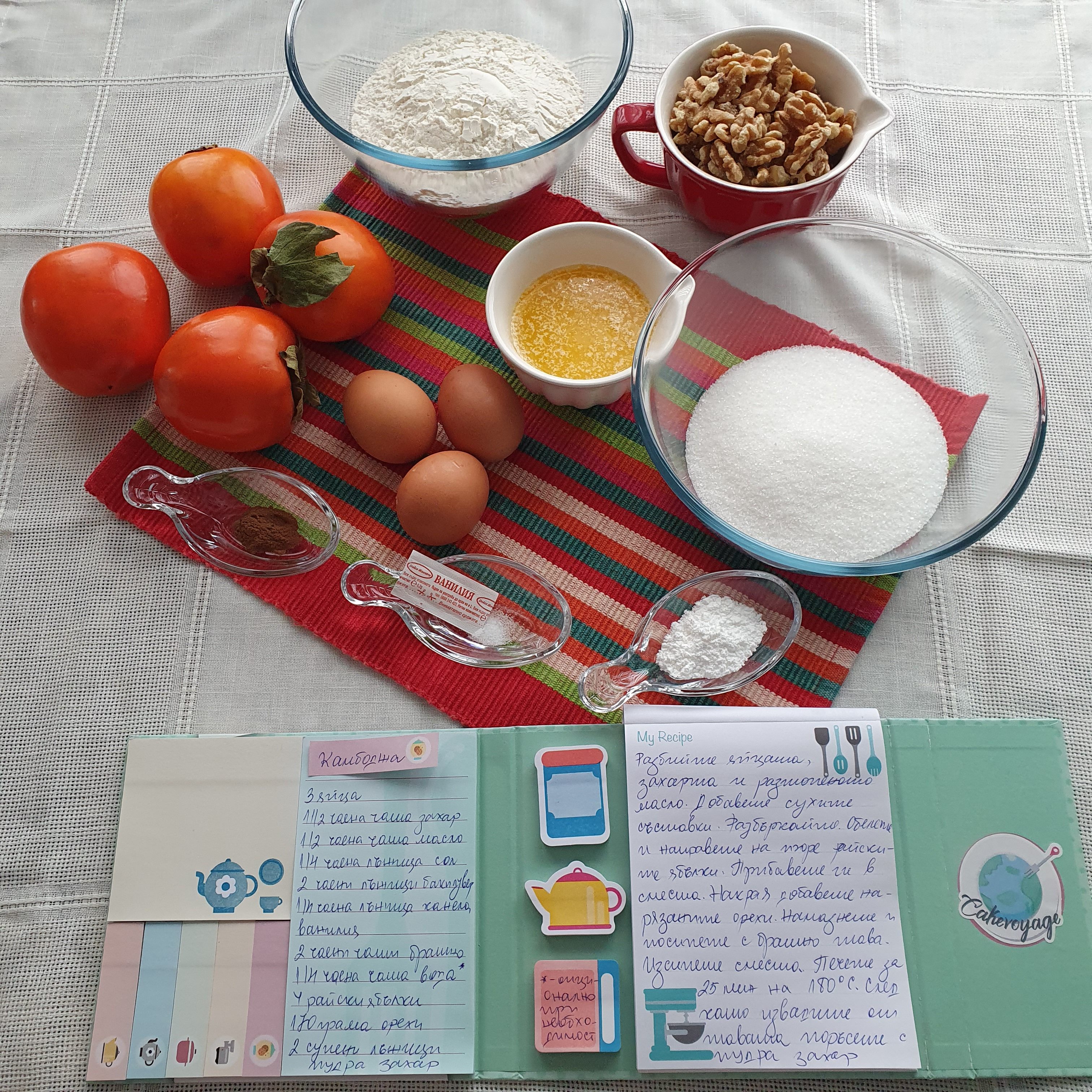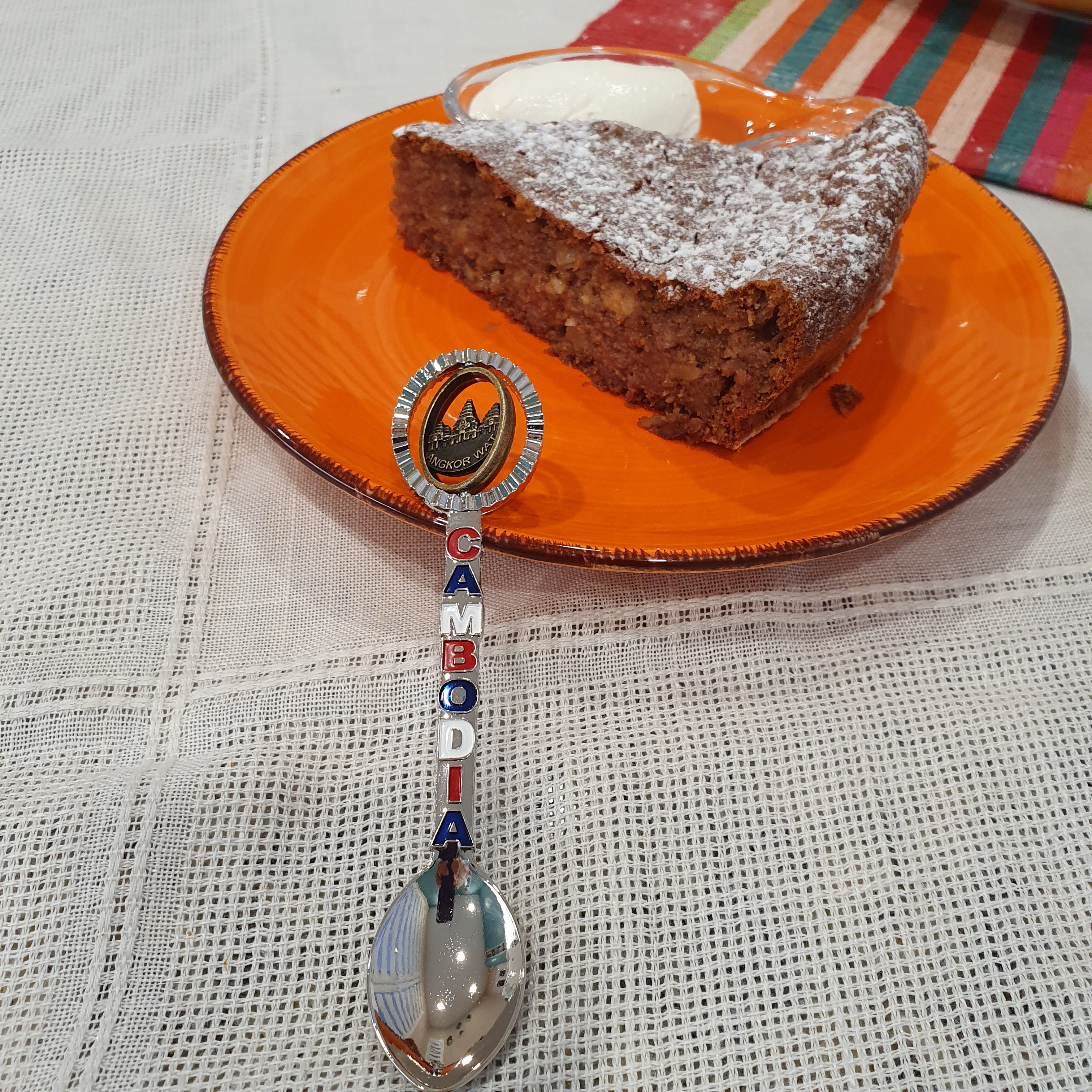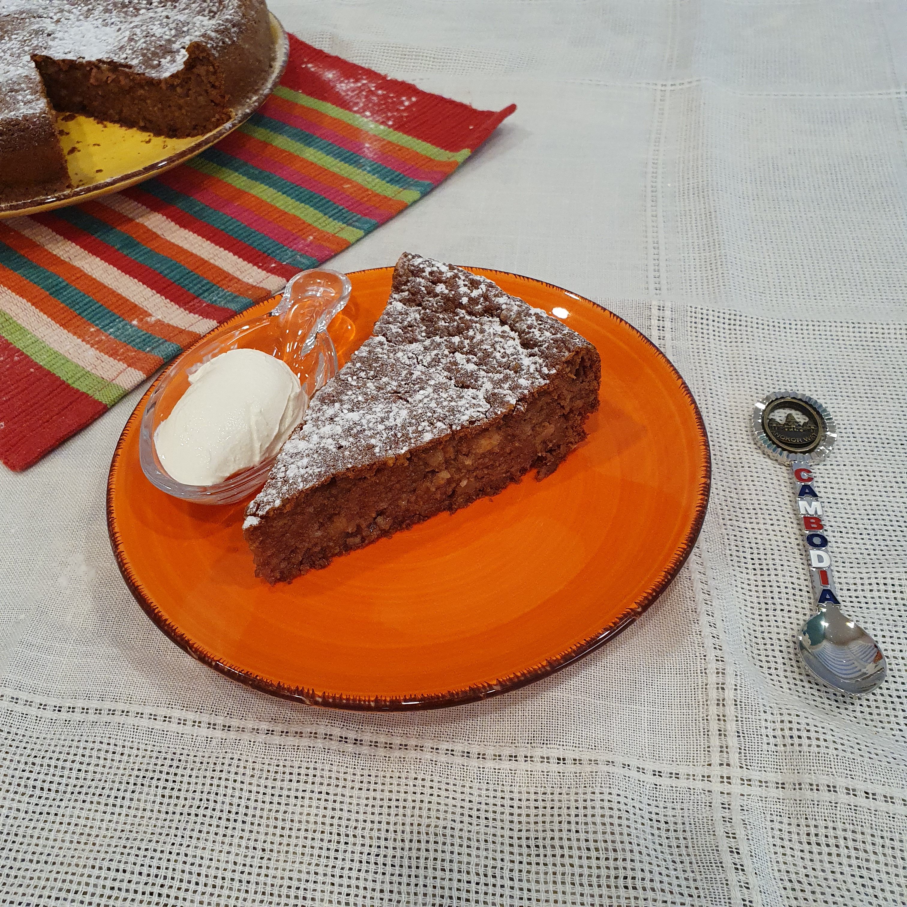 I served myself a piece with a little sour cream and to tell you they fit very well. The cake is juicy and unpretentious, but very balanced in taste and texture. As a dessert for every day is a very good hit and does not take more than 15 minutes to prepare + 25-50 minutes to bake. ๐Ÿ™‚ Try it yourself. And when I go to Cambodia, I will try to try it there. ๐Ÿ™‚