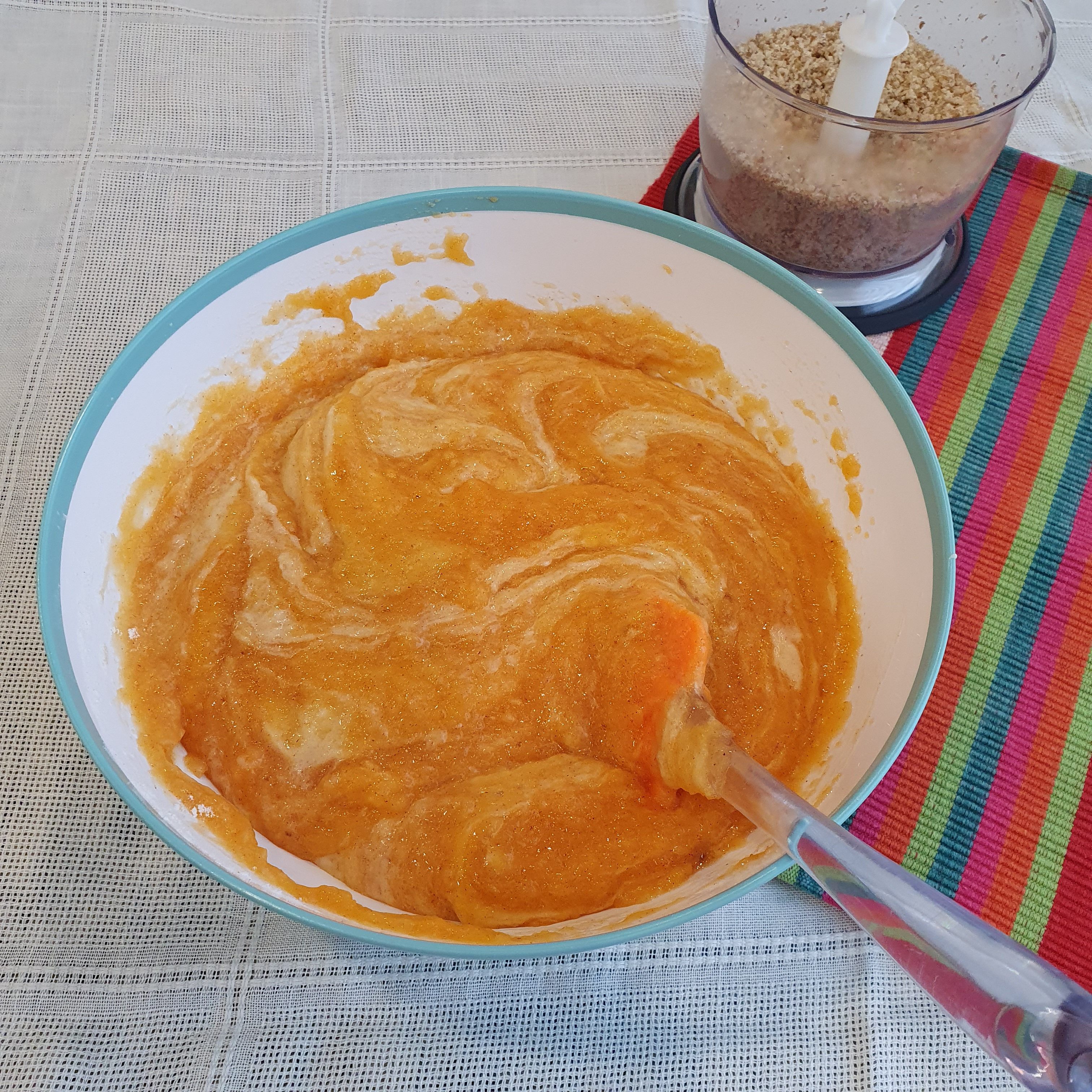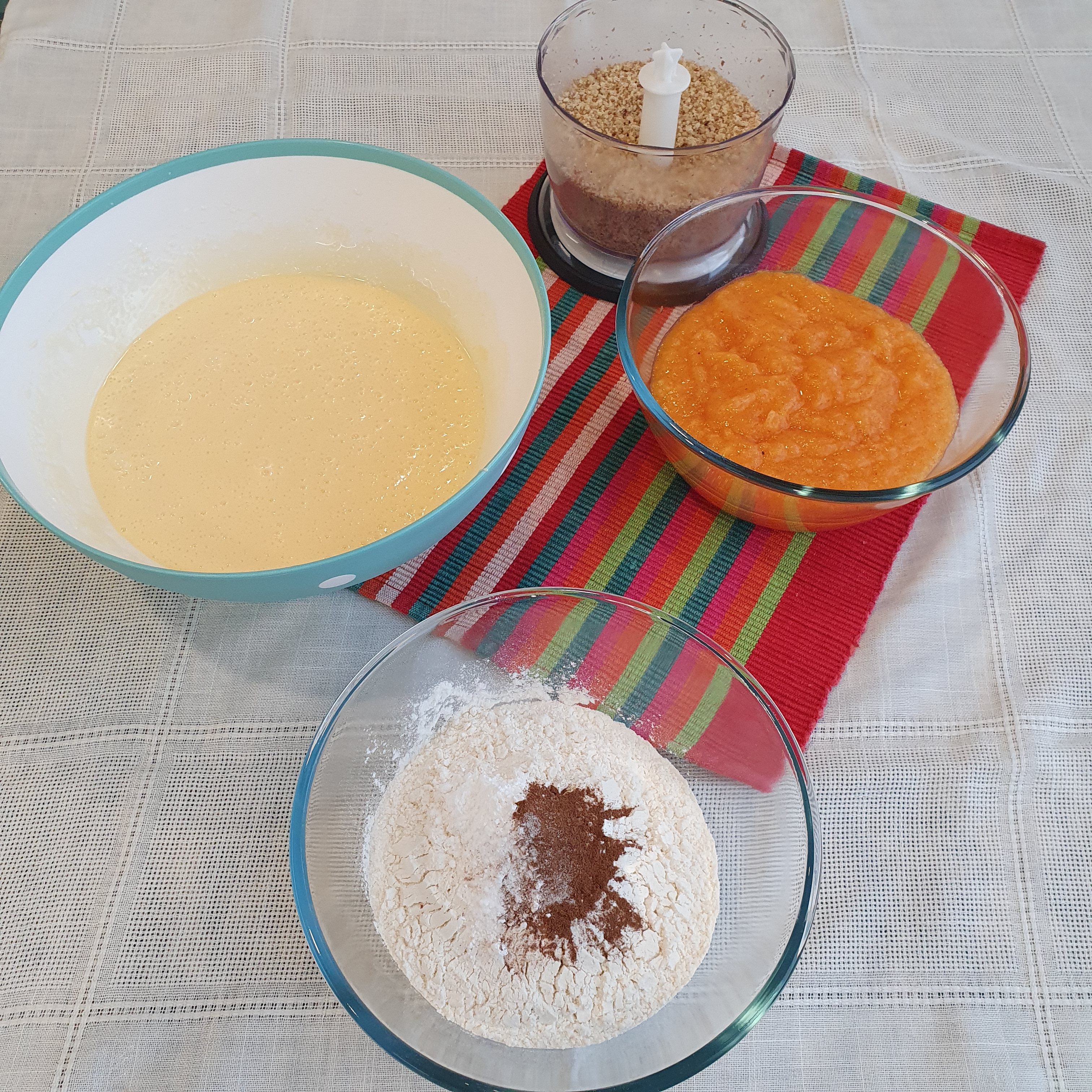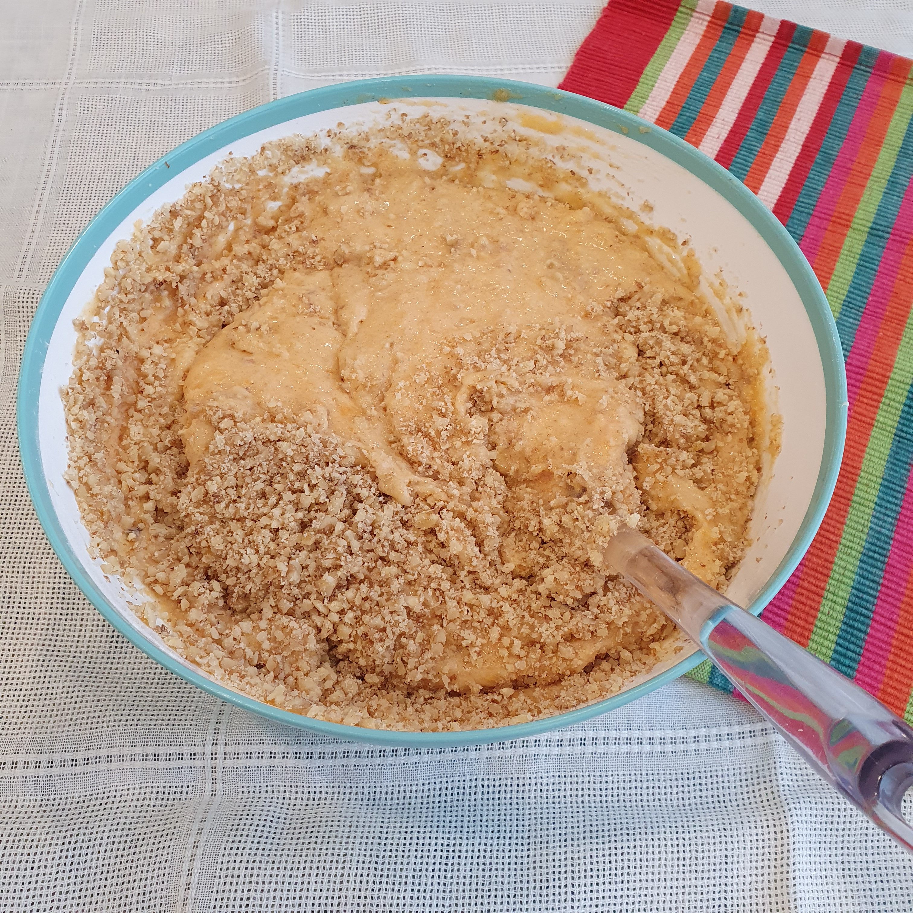 Grind with a blender or chop the walnuts with a knife. As you like. I personally prefer them to be bigger, but the people around me like the pieces of nuts to be smaller. So today I complied with them. Add them last in the mixture and mix lightly.