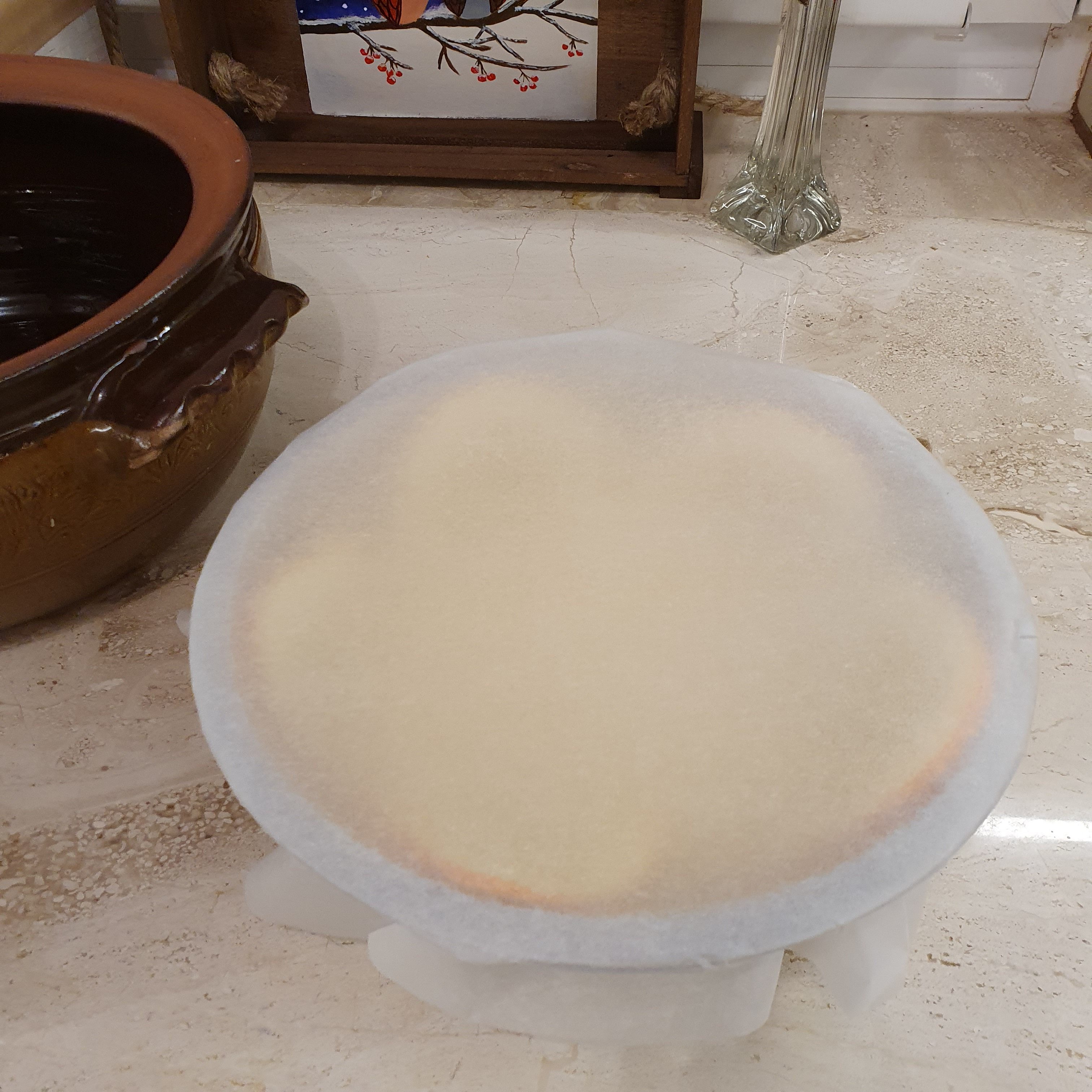 Put baking paper on the bowl and tie with kitchen thread, but make sure there is room, because the mixture will swell.