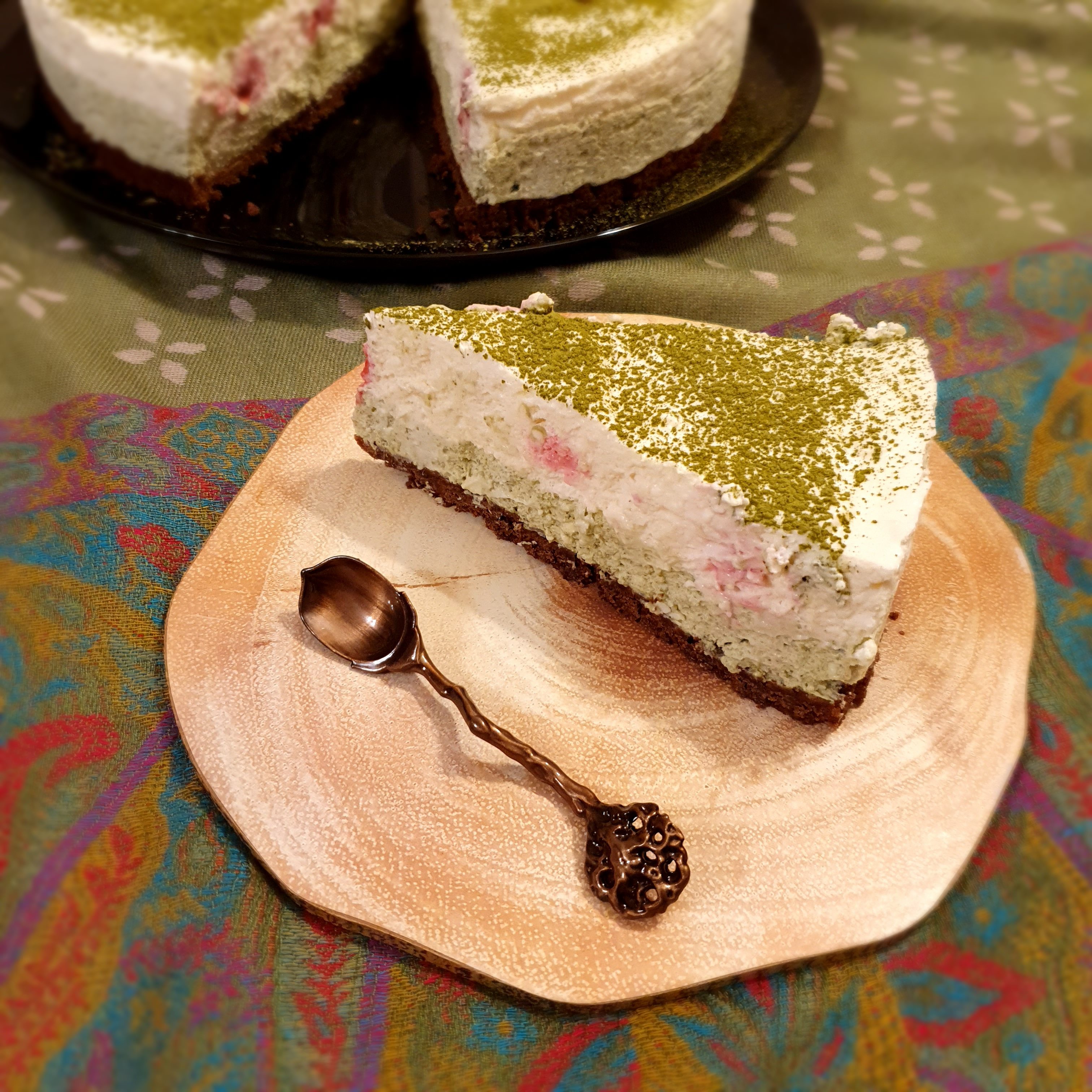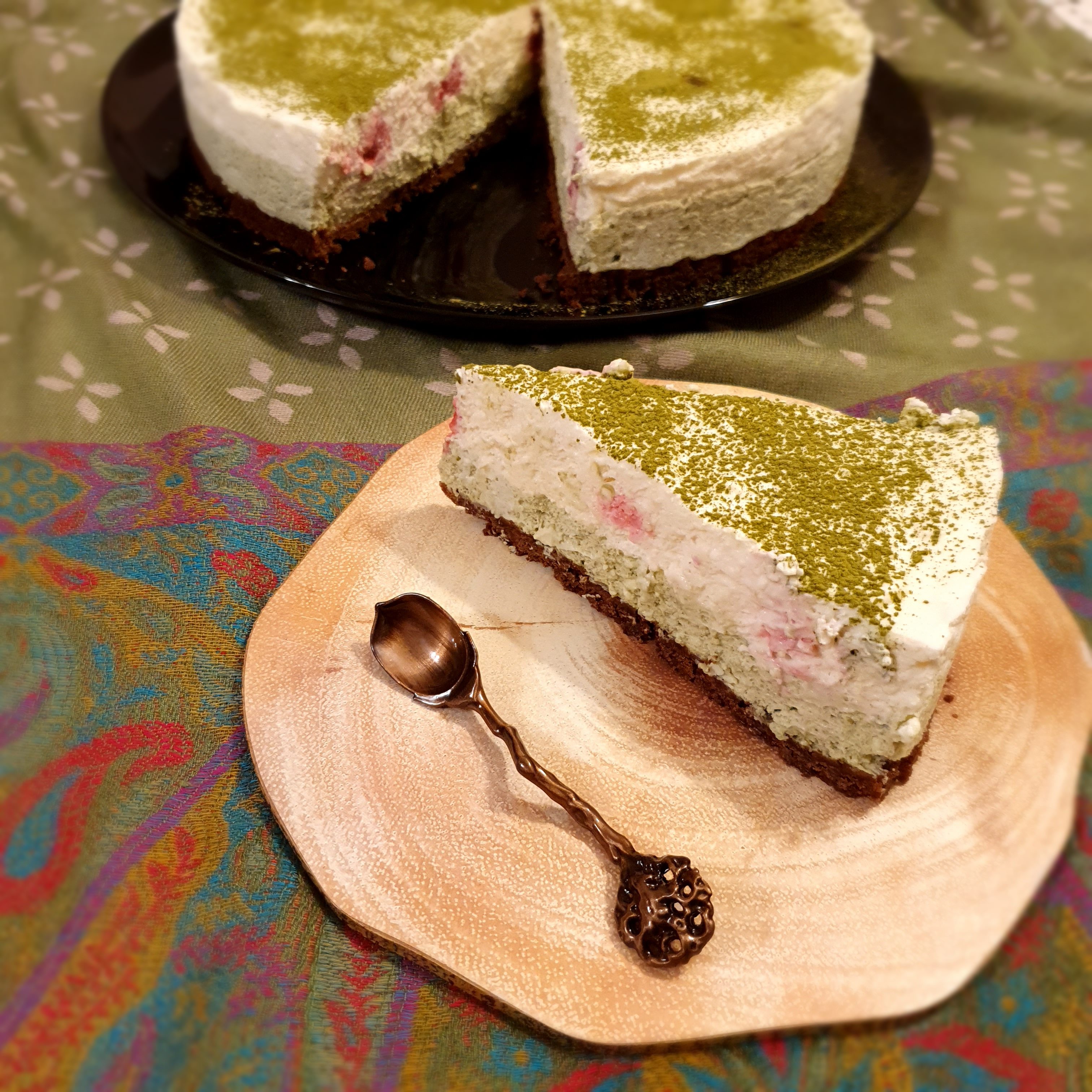 Sprinkle some matcha tea and the cake is ready. Easy and simple.