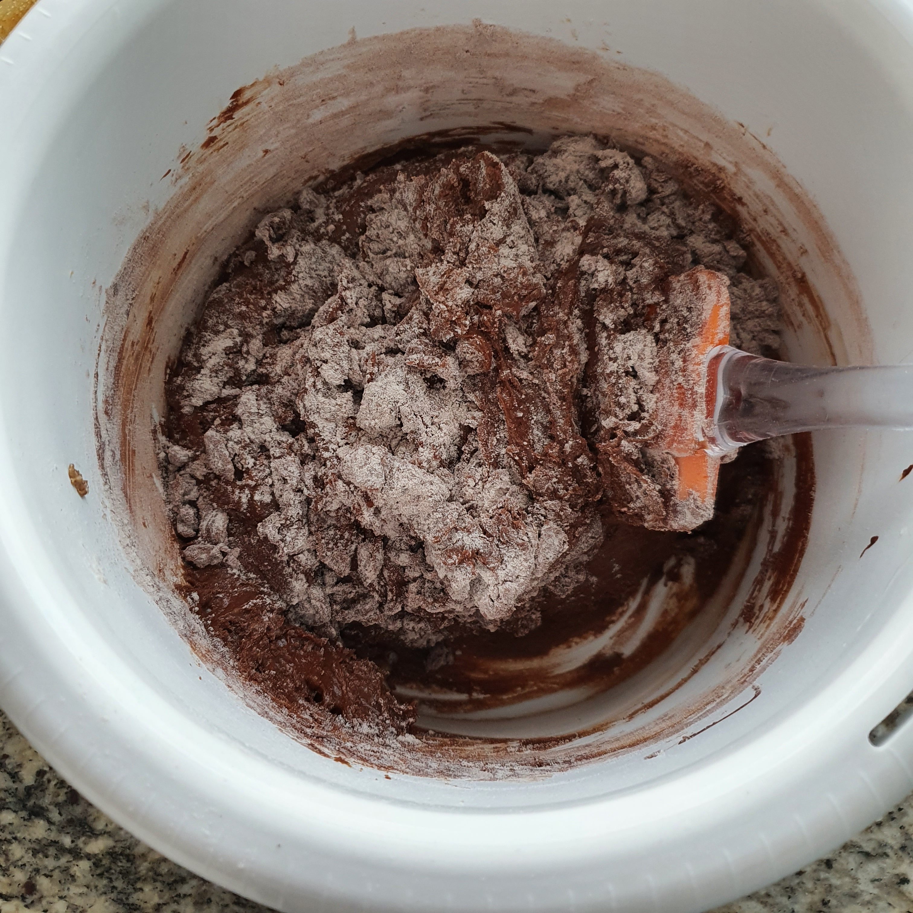 Add the melted chocolate to the mixture first.