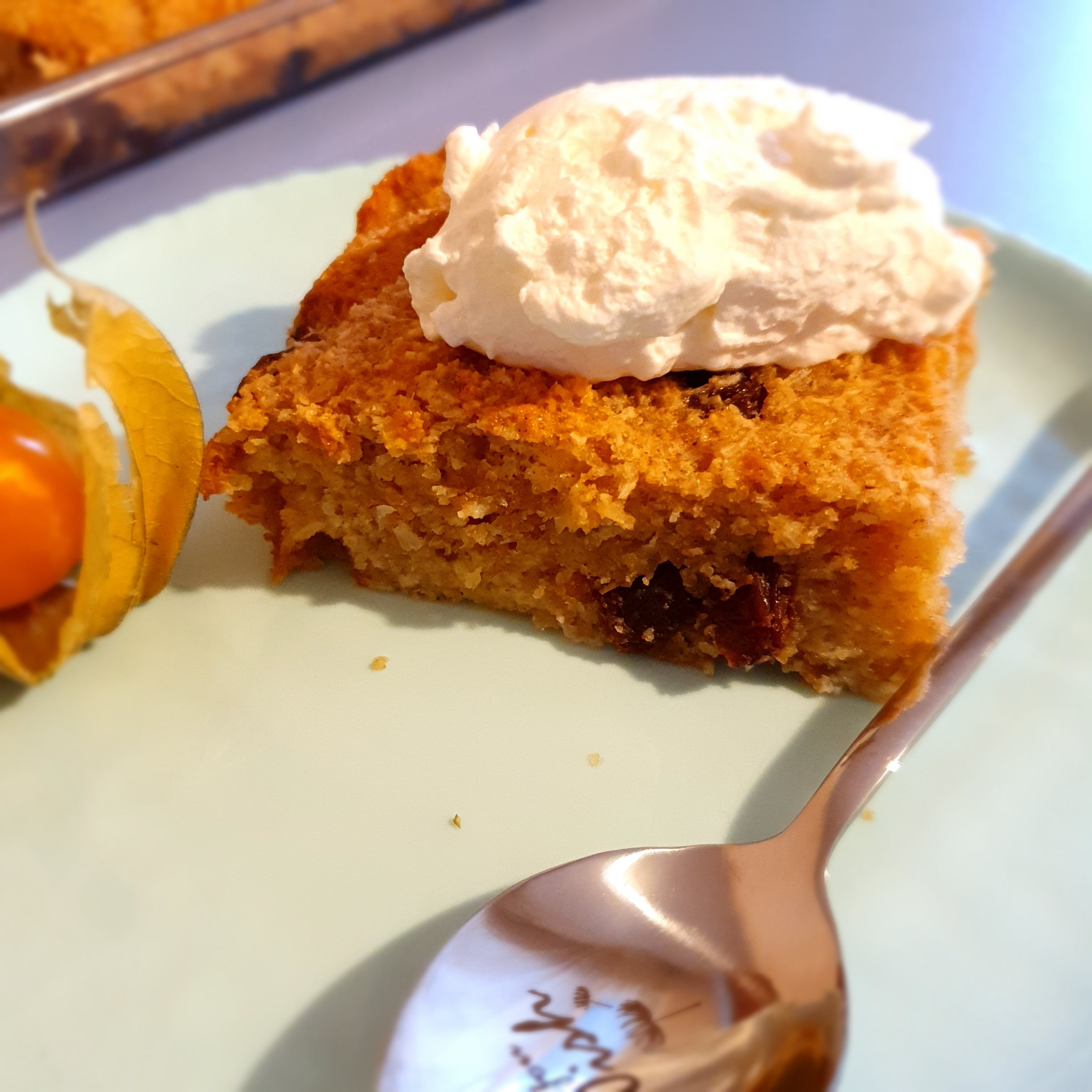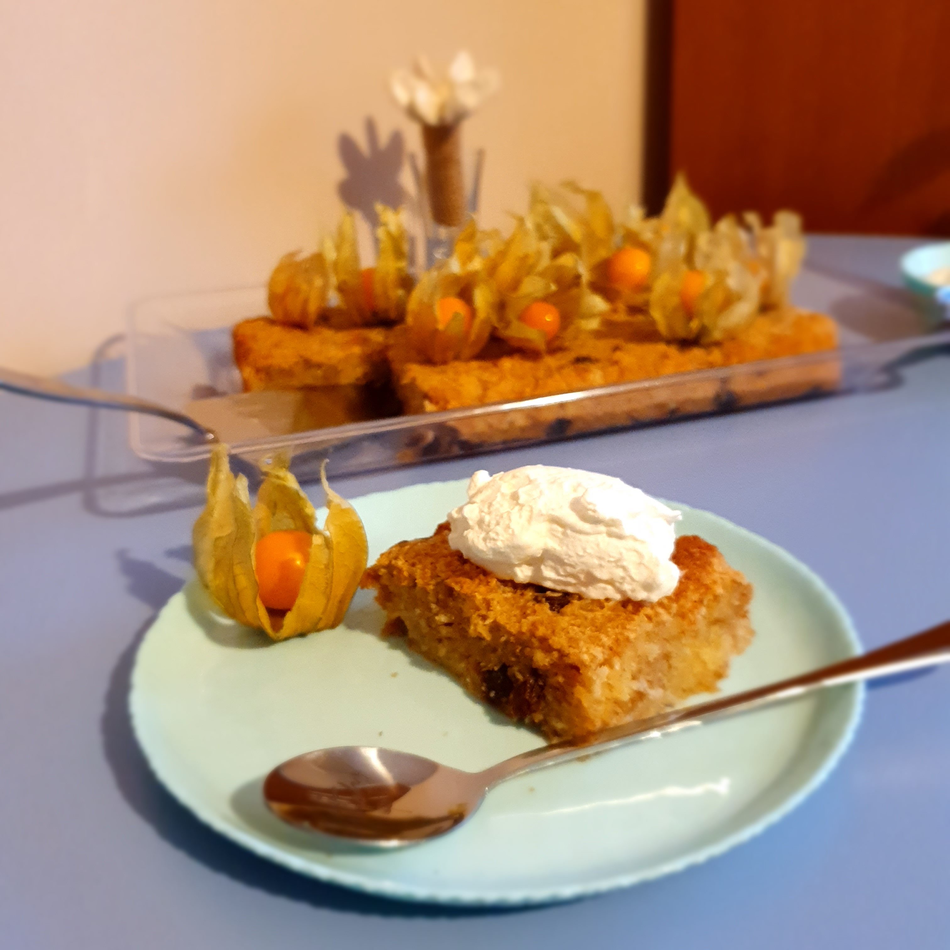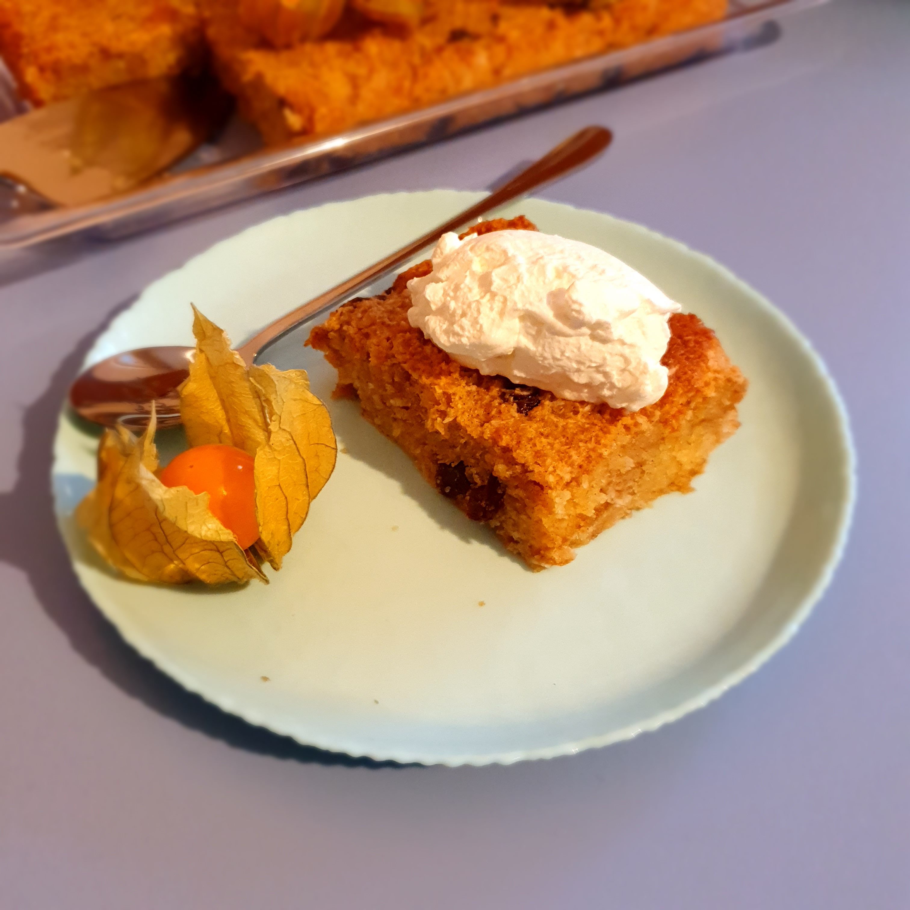 The cake has a very balanced sweetness. It can also be served warm or chilled. It is juicy and very tasty. For easy, I guess you convinced yourself that it is.